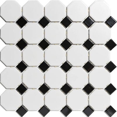 Keramická mozaika bílá; černá; černo-bílá PAOC140915 se smíšeným povrchem a s osmihranným tvarem jednotlivých prvků mozaiky.Výborně se uplatní jako obklad do kuchyně, do...