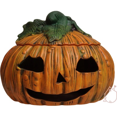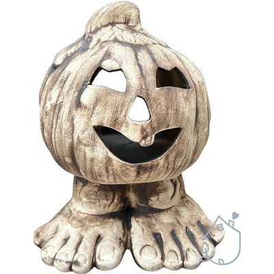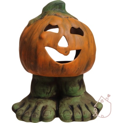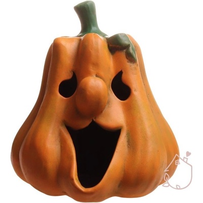 Keramická dýně na nožičkách, můžete do ní vložit svíčku a ona na vás bude v noci ze zahrady strašidelně svítit. Dýně je vysoká 26 cm, široká 21 cm a hluboká 17 cm. Česká ruční...