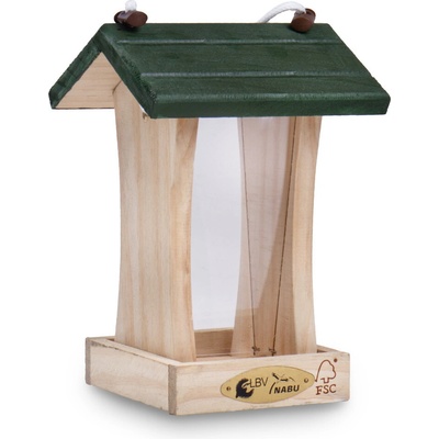 Kompaktní závěsné dřevěné krmítko Reno s přírodním korpusem, zelenou střechou a s plexisklem pro kontrolu hladiny krmiva. Plní se přes odnímatelnou střechu. Doporučujeme jej...