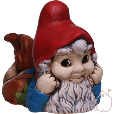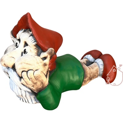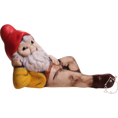 Keramický trpaslík může ležet na balkóně nebo zahradě po celý rok, je vyrobený v mrazu odolné keramiky. Trpaslík je dlouhý 33 cm, široký 21 cm a špička jeho čepice je 22,5 cm...