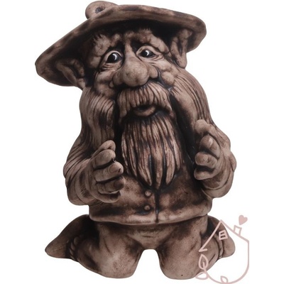Malý vousatý trpaslík z povětrnostně odolné keramiky. Trpaslík má přátelský výraz s pěkné detaily. Barva - hnědá. Ručně malovaný, co kus to barevný originál. Rozměry - výška...