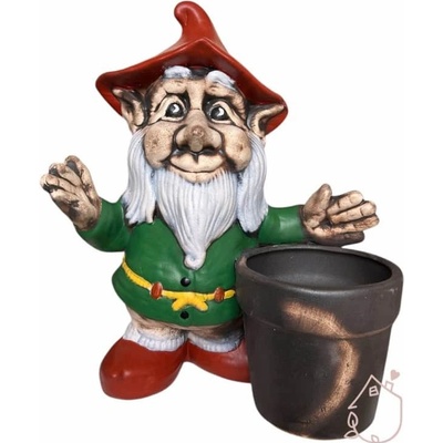 Trpaslík na tradiční zahradu prostě patří. Tento dokonce může mít v kolečkách zasazenou vaši oblíbenou rostlinu. Zahradní dekorace je vyrobená z mrazu odolné...