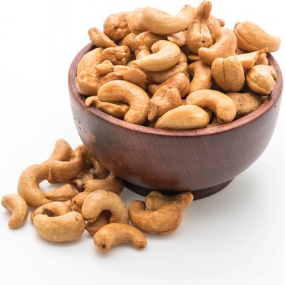 Jádra kešu ořechů pražená solená Složení: kešu ořechy, jedlá sůl 2% Popis: Ledvinovník západní, 12 metrů vysoký tropický strom, poskytuje jedlé nažky "kešu" Použití : Při pečení...