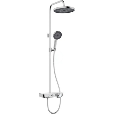 Sprchový set obsahuje nástěnnou termostatickou baterii přepínač mezi hlavovou a ruční sprchou rozteč: 150 mm odkládací plocha z bezpečnostního skla barevné provedení chrom / bílé sklo bezpečnostní zarážka při 40°C hlavovou sprchu průměr 260 mm 1 proud sprchovou...