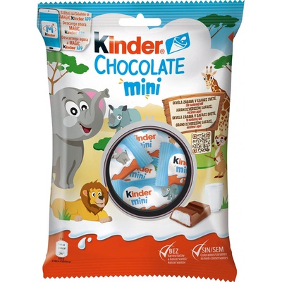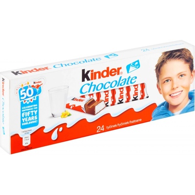 Kinder Chocolate - tyčinky speciálně vytvořené pro děti. Díky své receptuře s lahodnou krémově mléčnou náplní je Kinder Chocolate dokonalým malým pamlskem. Kinder Chocolate neobsahuje žádná umělá barviva ani ztužené tuky. Každá tyčinka dětské velikosti je zabalená...