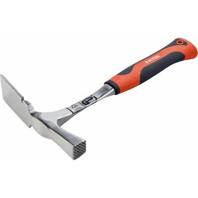 Zednické kladivo s kovovou násadou. Zednické kladivo s kovovou násadou. Kladivo má protiskluzovou úpravu na rukojeti s rozšířením na konci proti vyklouznutí.