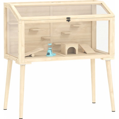 Dřevěná klec pro křečky s úložným prostorem 84 x 53 x 110 cm | přírodní Vaše zvířátka mohou šplhat, hrát si v útulných úkrytech a užívat si houpačky a rampy, které jsou součástí...