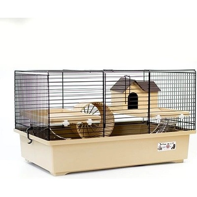 INTER-ZOO GRIM 1 Klec pro všechny malé hlodavce. Ve vybavení klece je plastový domeček a miska. Klec má odnímatelné přenosné ucha ve žluté barvě, domeček ve žluto-červené...