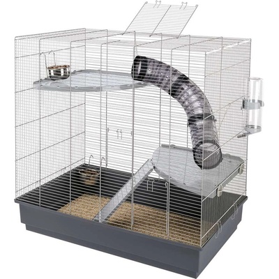 Klec FLAMINGO Rafi na křečky šedá 63x36,5x44,5cm Klec pro hlodavce Specifikace produktu - klec pro malé hlodavce - 2 x dveře s click systémem vpředu a nahoře - ...