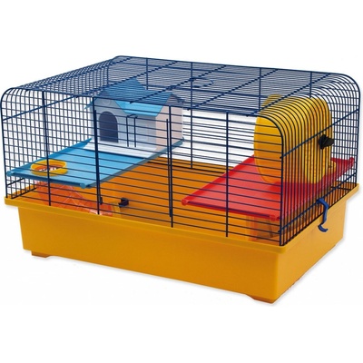Klec pro malá zvířata a hlodavce. Velikost: 40 x 22,5 x 26,5 cm. Rozteč mezi dráty: 1,1 cm. BYDLENÍ SE ZÁBAVOU Obsahuje: domeček, kolotoč, plastové patro a prolézací...