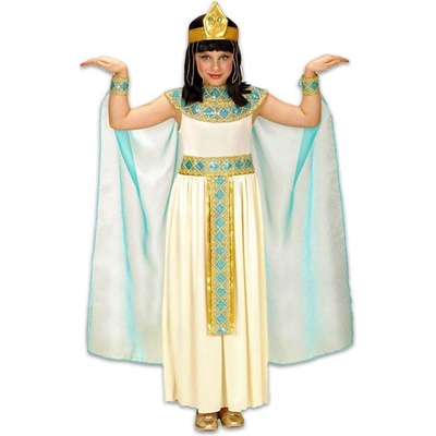 Kostým Malá královna Egyptská Kleopatra pro děti 116 Sada obsahuje: šaty s páskem, límec, manžety, pokrývku hlavy a pláštěnku. Barva: černo-zlatá. Dětský výrobek. Složení: 100...
