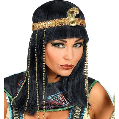 Dámská černá paruka, vhodná například pro kostým egyptské vládkyně Kleopatry. Barva: černá Materiál: 87 % polyester 13% železo Určeno pro: dámská