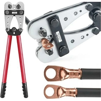 Typ nástroje: Ruční krimpovací kleště (šestihranné/6hranné) pro neizolované kabelové koncovky (např. oka, konektory)Rozsah krimpování: 10–120 mm2 (často se dělí na mm2: 10, 16,...