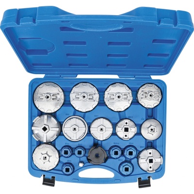 Sada obsahuje: - Ráčna: 1/2" - 21 olejových filtru - Očkový klíč 27mm - Praktický kufr Velikosti: - 8bodové klíče: 74 mm, - 12-ti hrotové klíče: 75 mm, 76 mm, - 14bodové...
