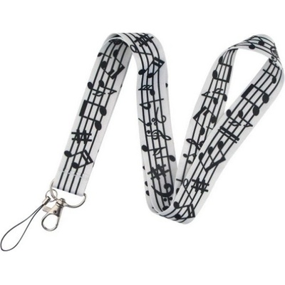 Textilní šňůra na krk s notami. Dlouhá je 45 cm a široká 2,5 cm. Použít jí můžete na zavěšení klíčů, na mobil, USB, ID kartu, MP3 atd. Materiál: textil Barva: jako na...