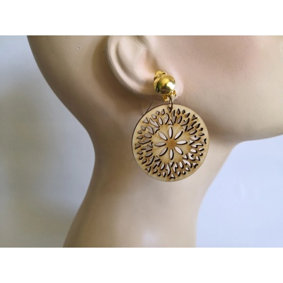 Naušnice klipsy, průměr přívěšku 4,5 cm. V případě zájmu možnost výměny kovových části za stříbrnou barvu.