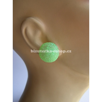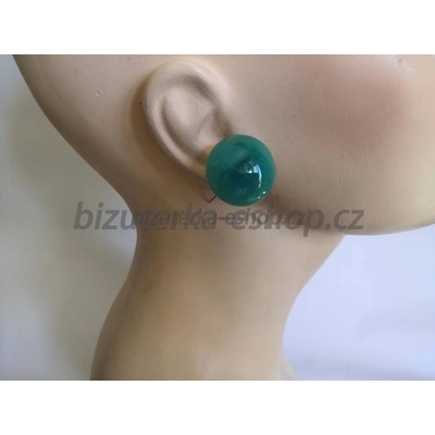 Naušnice klipsy, průměr kruhu 4,7 cm. V případě zájmu možnost výměny kovových části za stříbrnou barvu. Ve skutečnosti o něco světlejší zelená barva.