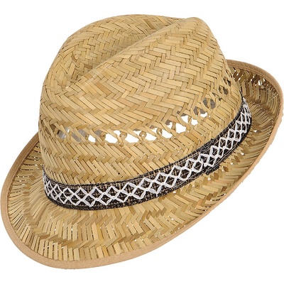 Westernový slaměný klobouk s ozdobnou dírkovou vazbou. S ozdobným páskem na klobouk, nastavitelnou šňůrkou a s vnitřním páskem s nastavitelnou velikostí. Materiál: 100% papírová...
