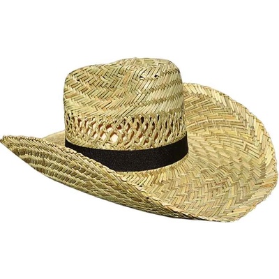 Pánský slaměný kovbojský klobouk zdobený stuhou. Materiál 100% sláma.