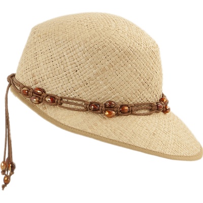 Slaměný klobouk s prodlouženým kšiltem je hustě pletený z přírodní Paglie. Kvalitní tradiční italská výroba. Je zdobený pletenou stuhou s jantarovými kameny v přírodních...