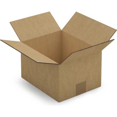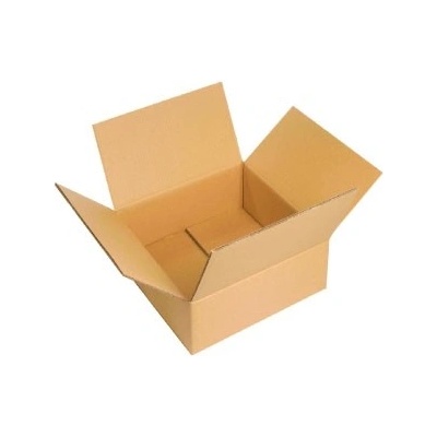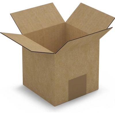 klopová krabice vyrobená z třívrstvé lepenky lepenka s B vlnou o šíři 3 mm vhodná pro balení lehčích předmětů bez potisku rozměry 200 x 200 x 100 mm barva hnědá