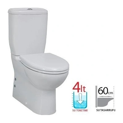 Keramický kombi klozet, barva bílá, hluboké splachování, zadní odpad. Klozet je vybaven systémem splachování Dual Flush (3/6 litrů). Rozměry: - šířka: 36 cm - hloubka: 63,5...