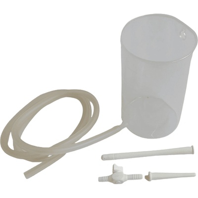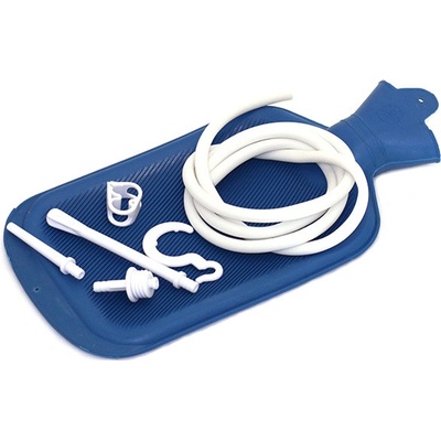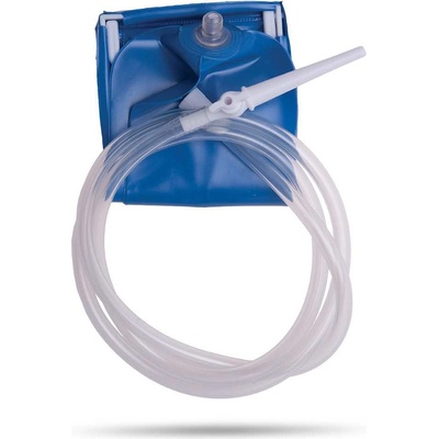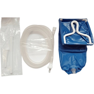 Kompletní klinik sada na klystýr se skládacím dvoulitrovým gumovým sáčkem, se závěsným háčkem a hadicí.