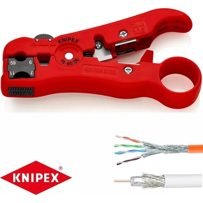 Nástroj odizolovací na koaxiální a datové kabely Knipex 16 60 06 SB univerzální odizolovací nástroj pro koaxiální kabely: RG 59, RG 6, RG 7 a RG 11 k odizolování vnějšího...