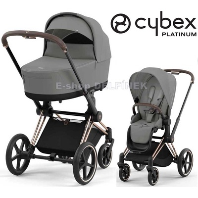 Corolle Set skládací kočárek trojkombinace Cybex Landau 3v1 Priam s multifunkčními předními koly a vajíčko pro panenku