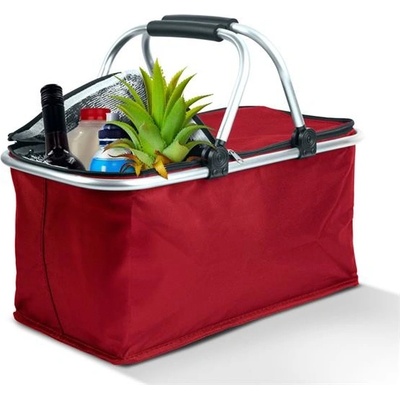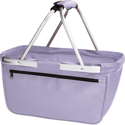 Nákupní košík s hliníkovým rámem a přední kapsou na zip, lze složit, rozměry: 45x25/45x25cm Materiál: 600D polyester. Barva: antracitová, černá, červená, fialová lila, modrá...