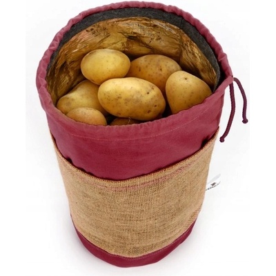 Jedinečný třívrstvý designový pytel na brambory, který pojme 2,5 kg brambor. Vnější vrstva je tvořena kombinací bavlněné látky a jutoviny, dno je z nepropustné pevné textilie....