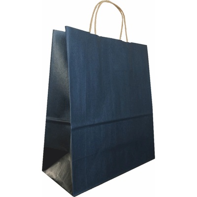 320x130x405 mm, taška hnědá s krouceným uchem, modrý potisk, 100 gsm hnědý papír baleno po 250 ks/karton.