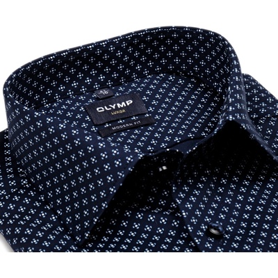 Olymp Modern Fit košile se strukturou a světle-modro-bílým vzorem prodloužený rukáv tmavomodrá