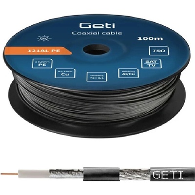 Vodič koax GETI 121CU PVC (100m cívka) GETI Koaxiální kabel vysoké jakosti se středovým vodičem z čisté mědi, vhodný pro použití v kabelových distribučních sítích. Technické parametry: - vnitřní vodič: čistá měď, o 0,80mm ±0,01 - opletení: čistá měď, 72 x 0,10 mm -...