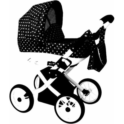 Kočárek pro panenky Dymex vyniká černým provedením s bílými puntíky. Je vyroben z látky, kovu a plastu a zaručuje tak kvalitu a odolnost. Součástí výbavy je praktický látkový...