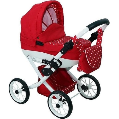 dětský, vhodný od 3 let, hluboký, skládací, materiál konstrukce kov, možnost polohování stříšky, s úložným prostorem, max. výška panenky 50 cm, taška součástí balení, rozměry 70 × 42 × 75 cm (H׊×V), bílá a červená barva (2030)