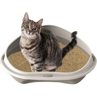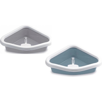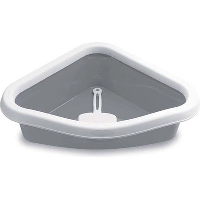 Rohová toaleta pro kočky. Její trojúhelníkový tvar umožňuje umístit toaletu i do rohů. Je vybavena s vysokou hranou, čímž se zabraňuje uniknutí podestýlky ven z toalety. Rozměry: 40x56x14cm