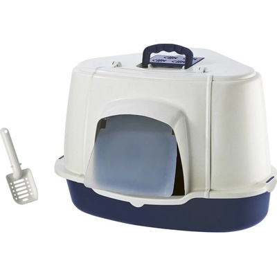 Krytá kočičí toaleta s filtrem do rohu. Součástí balení je lopatka, uložená v horní části toalety. - rukojeť pro komfortní manipulaci s toaletou - uhlíkový filtr pro neutralizaci nepříjemného zápachu - lopatka v horní části toalety Rozměry: 540x400x400 mm