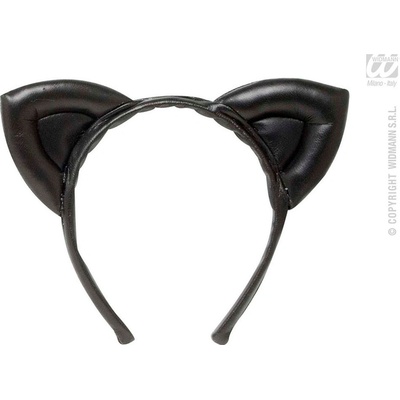 Černé kočičí uši na čelence. Uši mají elegantní vzhled a jsou z černé koženky. Velikost pro děti i dospělé.