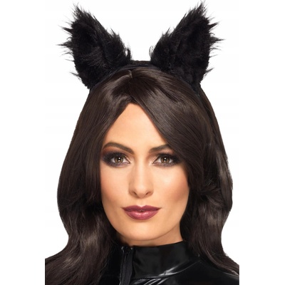 Uši kočka na čelence černé Smiffys Kočičí uši, černé - chlupaté Materiál: PE, POLYESTER