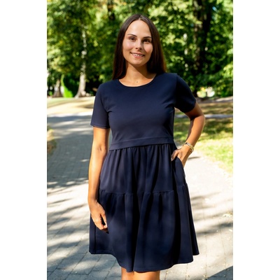 Stylové šaty s 3/4 rukávem pro těhotné a kojící ženy. Zavinovací střih a midi délka vytvářejí velmi elegantní a ženský vzhled.