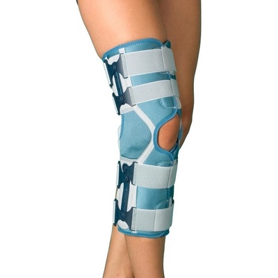 Kolenní ortéza rozepínací po celé délce se snadnou aplikací a dobrým vedením čéšky. Multicentrické čtyřbodové kolenní dlahy z lehkého kovu umožňují limitovaný pohybu kolene...