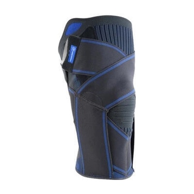Krátká rozepínací kolenní ortéza z prodyšného materiálu D-Tex. Postranní dvouosé dlahy z lehkého kovu s limitací hyperextenze a zvýšená podpora pomocí suchých zipů na stehně a...