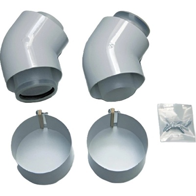 Obsah sestavy: 2x koleno 45° 2x těsnění Ø60 mm 2x manžeta Ø100x70 mm + spojovací materiál Tlaková ztráta: 0,5 Em