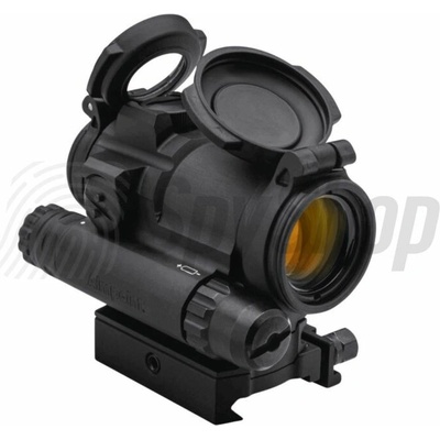 Odolný zaměřovač s červeným bodem, pro použití v nejnáročnějších podmínkách, kompatibilní se všemi generacemi NVD. Dodáván včetně rychloupínací montáže QRP (Picatinny), spacerem a mřížkou Killflash. Umístění spínače je v pozici 2hod (nahoře).