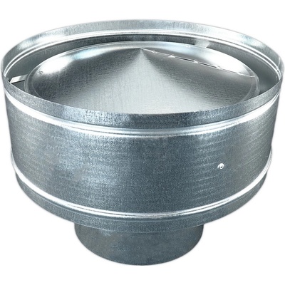 Odvětrávací hlavice protidešťová pro potrubí průměru 160 mm, vyrobena z pozinkované oceli, zabraňuje vniknutí vody do vzduchovodů a tak nehrozí vniknutí vody až do místnosti, nebo k poškození ventilátoru.