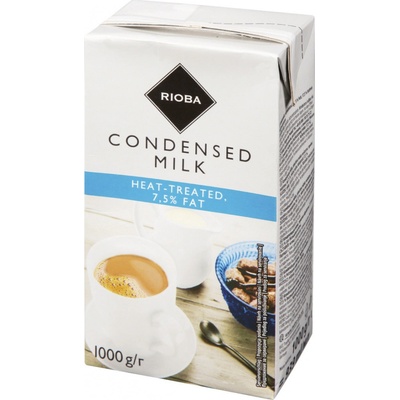 Lahodné kondenzované mléko, tepelně spracováno, 7,5% tuku, 17,5% mléčná sušina bez tuku.