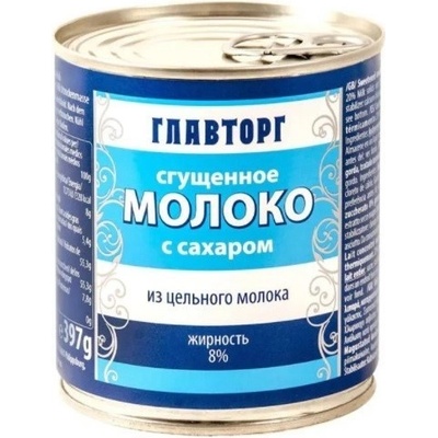 Slazené kondenzované mléko Glavtorg 397g Složení: plnotučné mléko, cukr 45%. Podmínky skladování: Skladujte v suchu a chladu. Výživové hodnoty pro 100g výrobku: Energetická...