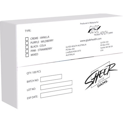 Glyde Dams Cola jsou ochranné latexové fólie vyrobené z přírodního kaučuku. Jsou tenké (do 0,05 mm), hedvábně jemné a suché, což zajišťuje pohodlné použití. Fólie mají rozměry...