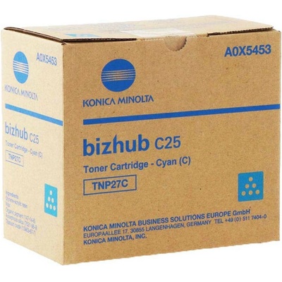 Originální toner Konica Minolta TNP27C, TNP-27C, A0X5453, barva azurová (cyan), výtěžnost 6000 stran A4 při 5% pokrytí. Pro tiskárny Konica Minolta bizhub C25